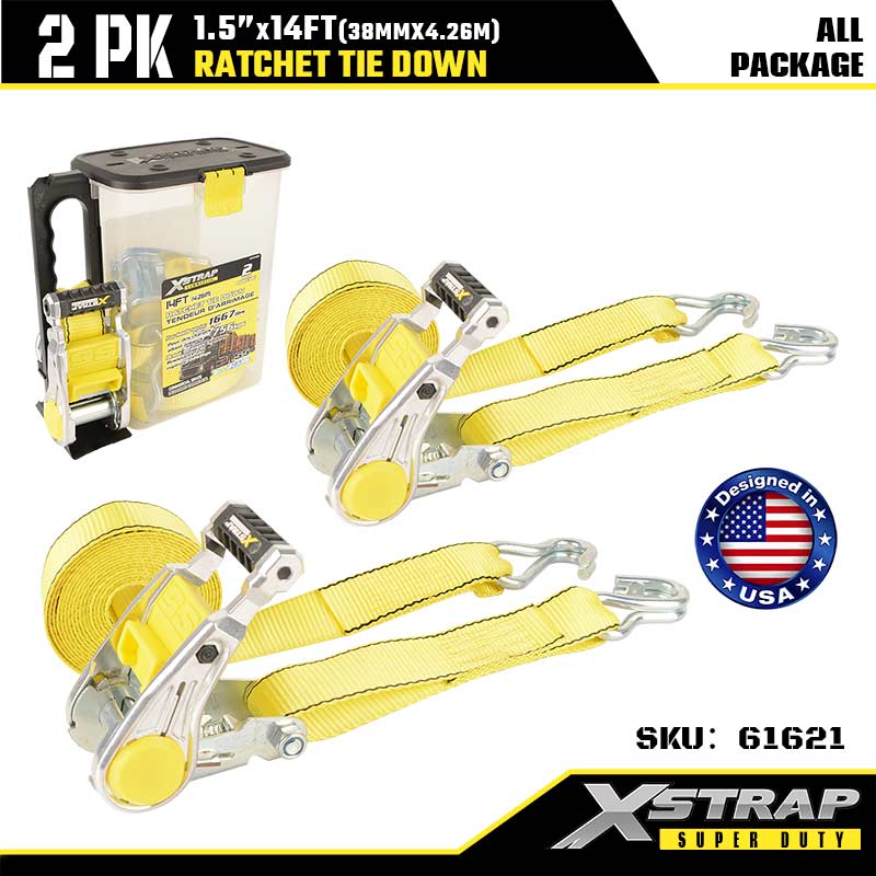 ربط سقاطة Xstrap 2PK مع خطافات J مزدوجة، حزام سقاطة من البوليستر مقاس 1-1/2 بوصة × 14 بوصة، أشرطة تثبيت لربط البضائع بسعة 1667 رطلًا مع خطافات J مزدوجة للمقطورة شديدة التحمل، وقارب تزلج على مقطورة مسطحة، وسيارة صغيرة، ومعدات ثقيلة.