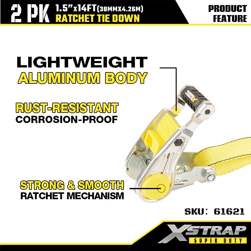 - سقاطة ألومنيوم مريحة: يحافظ جسم الألومنيوم المقاوم للصدأ على السقاطة خفيفة وسهلة المناورة، بينما تتيح لك الآلية الناعمة شد الأحمال وقفلها في ثوانٍ بيد واحدة. لا مزيد من الجهد للحصول على ثبات محكم - حتى المستخدمين الجدد يمكنهم إتقانها من المحاولة الأولى.