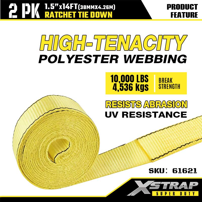 - حزام بوليستر عالي المتانة: حزام البوليستر بعرض 1.5 بوصة يقاوم الاهتراء والتمدد والأضرار الناجمة عن الأشعة فوق البنفسجية، لذلك فهو يتحمل أشعة الشمس والمطر والتضاريس الوعرة. إنها قوية بما فيه الكفاية لمواد البناء ولطيفة بما يكفي لحماية معداتك الخارجية من الخدوش.